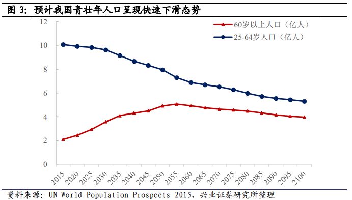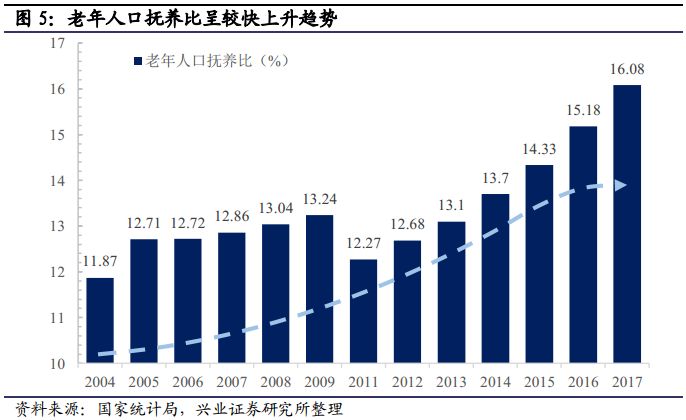 导言:我国人口年龄结构近年来呈现出老龄化加剧的特征,老人总量变多的同时青壮年数量亦出现快速下滑态势。老龄化的客观事实导致相继而来的三个结果: