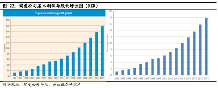 瑞曼是70岁以上新西兰人退休生活的首选养老机构。公司目前在新西兰和澳大利亚共有30个养老社区,其建立的人性化社区以及精心周到的生活医疗服务在新西兰有着很高的声誉。过去五年,其基本利润年均复合增长超过15%,截止2019年初,市值已达到56亿NZD。养老社区提供一系列的退休生活和护理选择,包括独立的联排别墅和公寓、服务式公寓、休养所、医院和痴呆症护理服务的护理中心居民可以舒适的度假设施,如在家般友好的休息室和酒吧,室内游泳池和水疗中心,健身房,美容院,保龄球场,图书馆,网吧,电影院等。