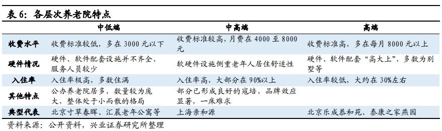 按照项目针对的不同群体进行划分,我国目前的养老服务机构可划分为高端、中高端和中低端客户三类,其各自的特点如下: