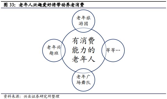 老年人退休后需要新的兴趣支撑起生活,随着老年人接收信息渠道越来越多元,老年人退休后的兴趣消费也将成为老年人养老产业的重要一环。例如众多大妈大爷喜欢跳的广场舞、老年大学、老年旅游团等等,激发起老年人在兴趣环节的消费活力,将会为养老产业注入新的增长。